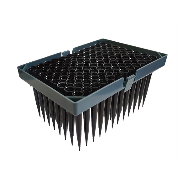 黑色聚丙烯導(dǎo)電吸頭有 96 孔懸掛吸頭架和嵌套吸頭架。